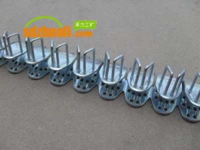 狼牙扣產品特點:板材成形,接頭低平,減少輸送帶運行的阻礙;短扣體結構,適應輕型輸送機的小滾筒要求;連體式帶扣,抗拉強度高。出廠配置:一種長度規格的狼牙扣8根。型號 適用帶厚(mm) 拉力強度(N/mm) 滾筒最小直徑(mm)55# &nb